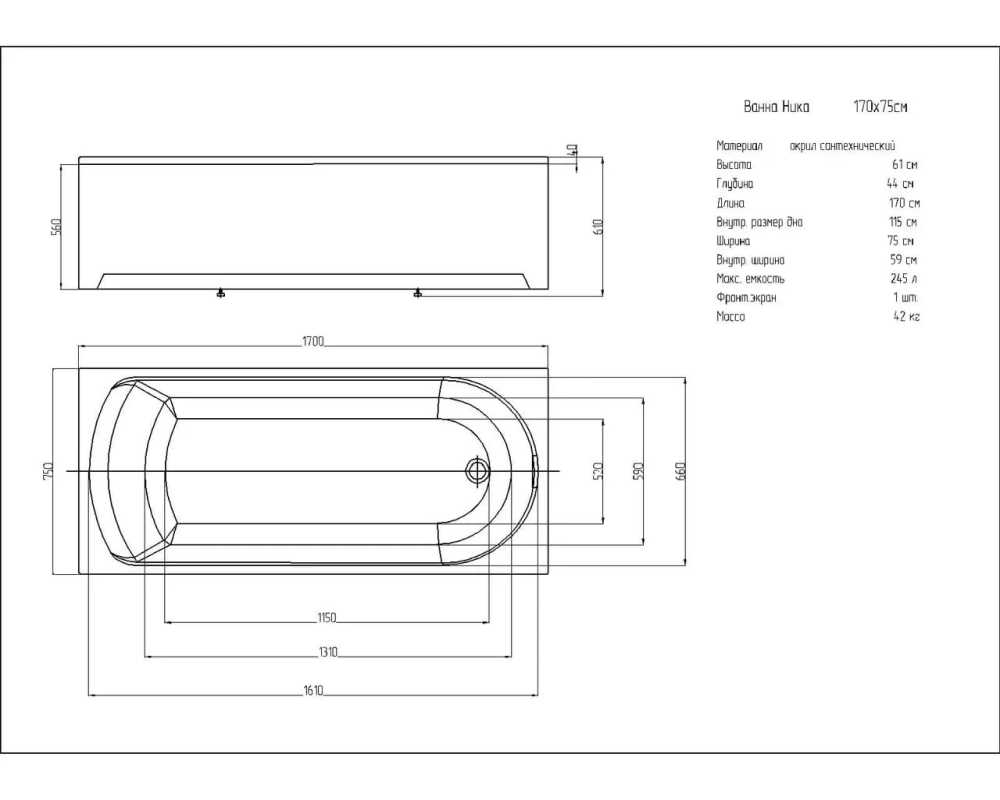 Акриловая ванна Aquatek Ника 170 x 75 см Акриловая ванна Aquatek Ника 170 x 75 см