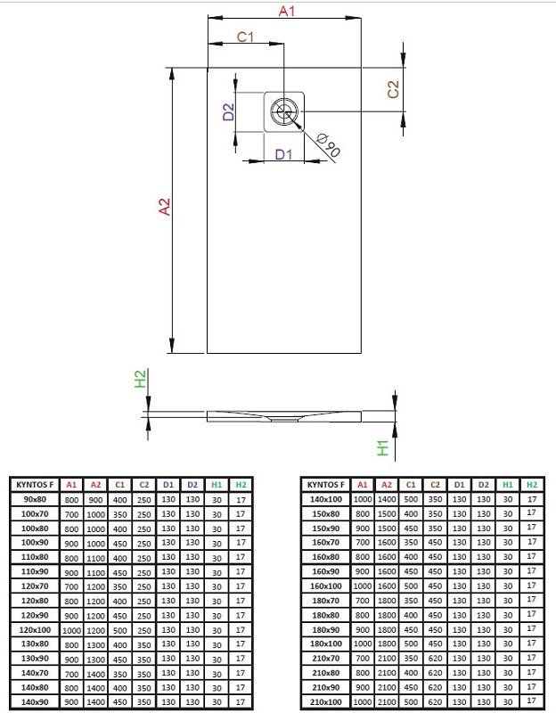 • Сливное отверстие: Ø 90 мм