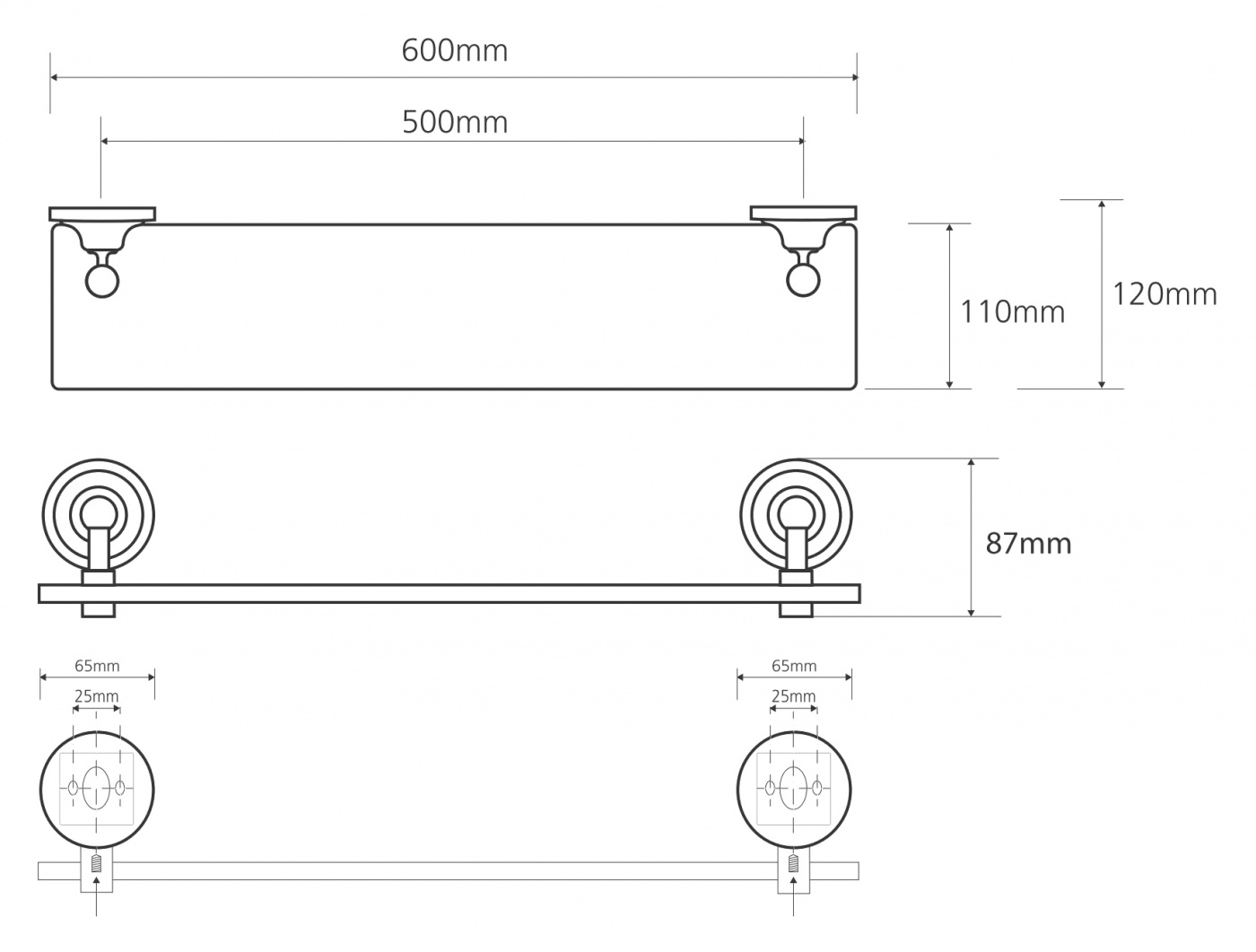 Полка стеклянная Bemeta Retro 144102267 60 x 12 x 9 см с бортиком, бронза