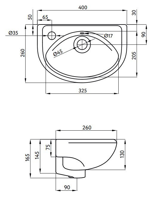 Раковина Della Glance 40 с отверстием Раковина Della Glance 40 с отверстием