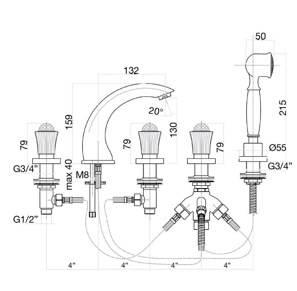 • Исполнение ручного душа: латунь/ABS пластик