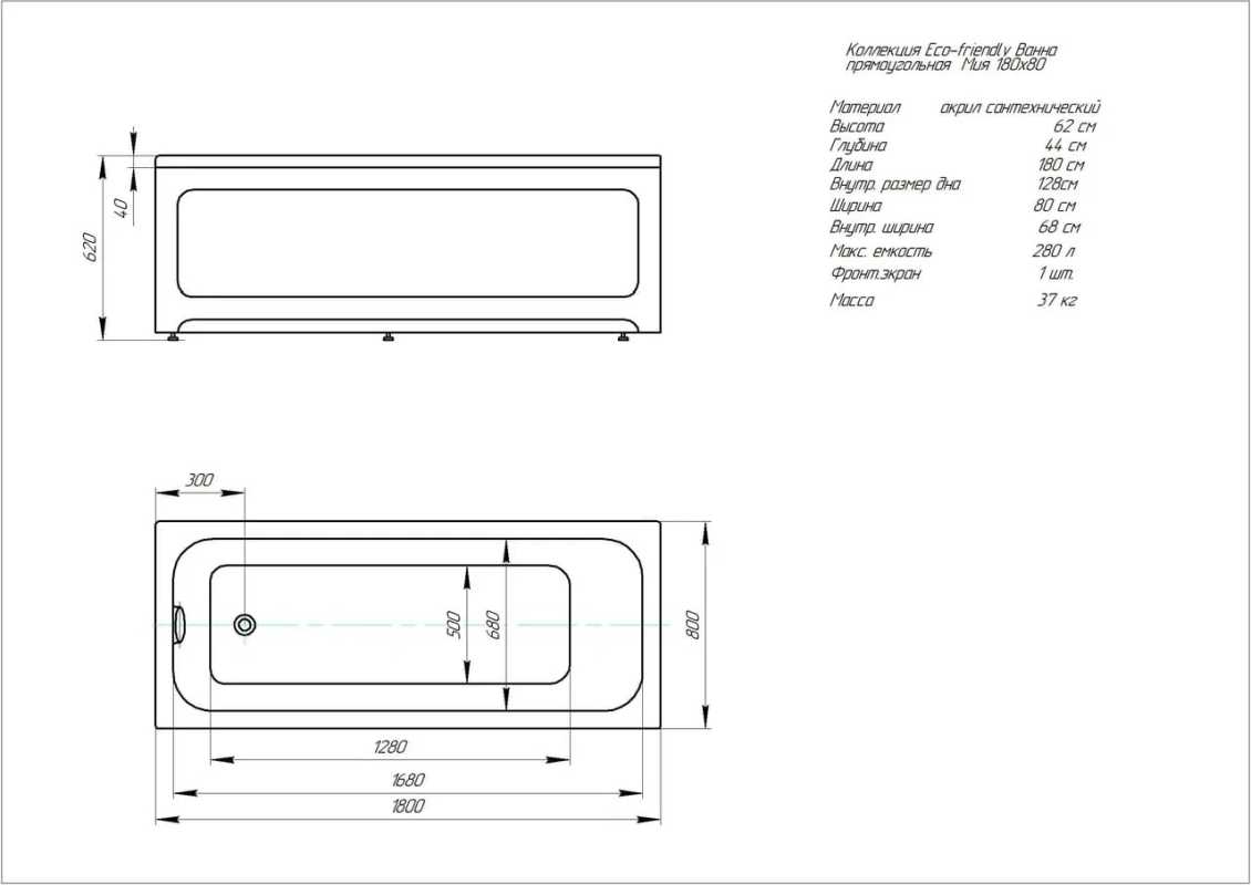 Ванна акриловая Aquatek Eco-friendly Мия 180 x 80 см, белая, MIY180-0000001 Ванна акриловая Aquatek Eco-friendly Мия 180 x 80 см, белая, MIY180-0000001